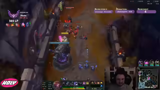 00:00:08Der Stream beginnt mit der Begrüßung der Zuschauer und der Feststellung, dass eine weitere Runde Solo-Queue-Verluste bevorsteht. Es wird die eigene Leistung und die damit verbundene Frustration thematisiert, insbesondere die hohen Punktverluste in den letzten Spielen. Trotz der Niederlagen und des resultierenden Frusts äußert der Streamer seine Freude am Spielen auf der Toplane. Er analysiert kurz seine Performance mit verschiedenen AD-Carrys, wobei er eine gemischte Bilanz von Siegen und Niederlagen feststellt. Die anfängliche Stimmung ist geprägt von der Auseinandersetzung mit den Herausforderungen des Spiels und dem Versuch, trotz der negativen Erfahrungen Spaß zu haben. Es wird auch kurz über das Abendessen (Reis mit Gemüse) und einen geplanten Protein-Shake gesprochen, was einen Einblick in die alltäglichen Routinen des Streamers gibt.