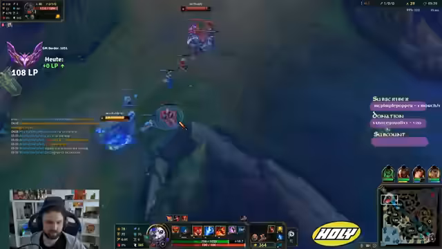 00:00:00Der Stream beginnt mit technischen Unannehmlichkeiten, da der Streamer versehentlich den falschen Kanal startet und sein Mikrofon unerwartet stumm geschaltet wird. Nachdem das Mikroproblem behoben ist, wechselt er zum eigentlichen Spiel und beginnt eine Lernparty im Spiel League of Legends. Der Chat ist aktiv und interagiert mit ihm, während er über verschiedene Builds und Champions spricht, insbesondere den Schurgen im Jungle.