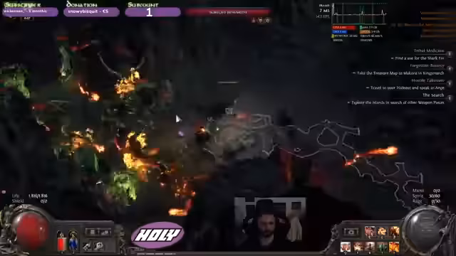 00:12:25Die Fortbewegung im Akt 4 gestaltet sich schwierig, was zu mehreren gefährlichen Situationen und nahezu tödlichen Begegnungen führt, insbesondere mit dem Schiff und einem Abyss. Der Streamer kämpft gegen Chimera und erhält wertvolle Beute wie Divine Orbs. Es wird eine große Map erkundet, und ein besonderer Boss wird als Arena mit speziellen Mechaniken beschrieben. Der Streamer zeigt sich überraschend tanky und besteht überwiegend ohne Probleme, auch wenn die Angst vor Game Over bei einem weiteren Tod zum Ausdruck wird.