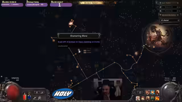01:25:49Es wird weiterhin versucht, die Mechanik des Fully Broken Effekts zu verstehen. Die Frage, wo die Stacks sichtbar sind und ob Gegner bereits vollständig gebrochen werden, bleibt offen. Zuschauer geben Hinweise, aber die korrekte Anwendung der Mechanik bleibt unklar. Es wird vermutet, dass ein Support Gem benötigt wird und verschiedene Skillungen werden in Betracht gezogen. Nach einem weiteren Bosskampf wird ein gutes Schild gefunden. Es wird überlegt, welche Support Gems für Seismic Cry geeignet sind und ob Weapon-Set-Points korrekt genutzt werden. Der Streamer plant, Shattering Blow später zu skillen, um Stun und Break zu kombinieren. Es wird entschieden, zunächst andere Key-Talente zu wählen und dann in Break zu investieren. Die Aura Scavenging wird als aktuell nicht nützlich betrachtet und es wird überlegt, Punkte umzuverteilen. Gold wird für Crafting benötigt und ein perfektes Jewel mit Armor, Physic Kill, Warcry Speed und Banner wird gefunden. Ein Fünflink wird mit einer Wall Orb erzielt, kann aber noch nicht genutzt werden, da der passende Gem fehlt. Es wird ein weiterer Boss erreicht und besiegt, aber das Verständnis für den Fully Broken Effekt bleibt weiterhin unklar.