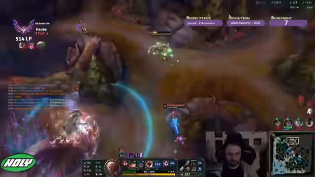 00:14:08Die ersten Spiele im Ranked-Modus verlaufen holprig. Der Streamer ist frustriert über wiederholtes Autofill, das ihn aus seiner gewohnten Rolle wirft. In einem Spiel als Jungle-Viego wird er auf eine schwierige Midlane-Syndra gestellt, die jedoch stark unter Druck gerät. Trotz seiner Anstrengungen und soliden Farm-Stats verliert das Team unglücklich aufgrund eines Positioning-Fehlers eines Teamkollegen, was den Grandmaster-Climb erschwert.
