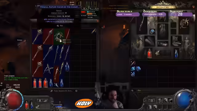 02:20:57Der Streamer erklärt, dass die Server ab circa 5 Minuten down sein werden und er die Zeit nutzen wird, um zu essen und sich einen Nudel-Brokkoli-Auflauf zu machen. Er fügt Fokus und Feierresi hinzu. Axial muss den Gambler von den Flammenwerfern holen. Es wird etwas länger dauern. Er fragt, was Rereto macht. Sein Healer ist dreimal ins Loch reingerollt. Der Streamer hat richtig Angst und zählt die dreien. Bis jetzt läuft es gut, aber jetzt sind seine Stacks weg. Es war sehr gut, dass er diesen Sockel mit 10 Fire Resi geholt hat, sonst wäre es vorbei gewesen. Ohne Movement Speed kann er nicht wegkommen. Er fragt sich, ob man den Hit rollen kann. Der Streamer weiß nicht, ob er direkt die Poison hier macht. Er bräuchte mittlerweile eine Waffe und bekommt eine, die besser ist als das, was er hat. Drei mehr Spell Damage und ein mehr Damage. Auch Life und Mana per Kälte. Er nimmt sie erstmal. Der Streamer hätte das eigentlich nehmen sollen. Er wird es eh nicht schaffen. Der Streamer weiß nicht, wie man den Suicide-Attack am besten dodgt.