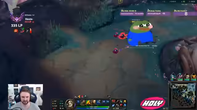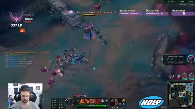 00:11:09Das aktuelle League of Legends Spiel gestaltet sich schwierig, da der Gegner Shaco bereits Eclipse besitzt und sowohl im Jungle als auch in der Midlane stark dominiert. Die CS-Differenz in der Midlane ist erheblich. Trotz eines anfänglichen Vorteils durch Kills, wird das Spiel zunehmend schwieriger. Es wird festgestellt, dass der Volibear sehr squishy ist und die Kills anscheinend an den Supporter gehen. Trotz des Roamings und der Versuche, das Spiel zu carrien, sollten auch andere Teammitglieder Kills erzielen. Es wird angemerkt, dass Katharina nach 49 Minuten noch nicht Full-Build ist, während die Supporter es bereits seit 20 Minuten sind, was auf ein langes Spiel hindeutet. Playbill wurde von Anfang an stark unter Druck gesetzt. Es wird die Bedeutung von Anti-Heal betont, aber festgestellt, dass niemand im Team es baut. Der Streamer überlegt, Anti-Heal zu kaufen, obwohl es nicht ideal für seine Rolle ist. Der Shaco wird als irrelevant abgetan, aber seine ständigen Angriffe werden als störend empfunden.