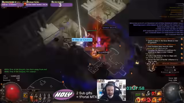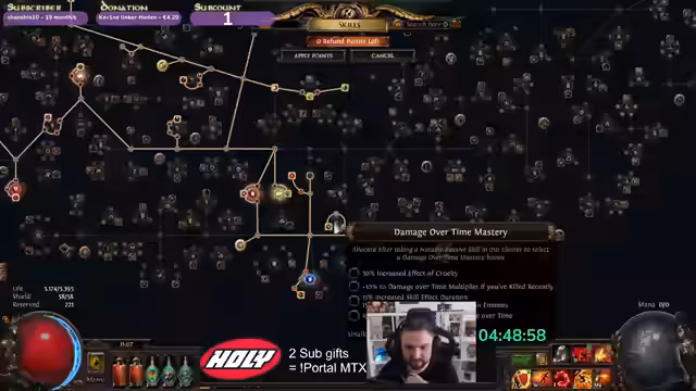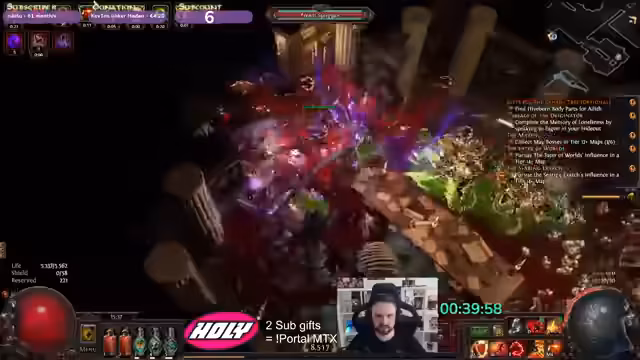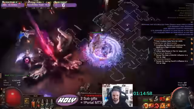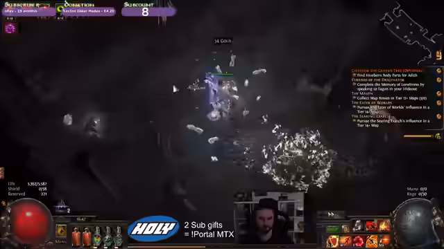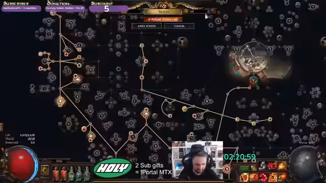 Bei dem Versuch, einen Subathon durchzuführen, spielte ein Akteur das Spiel Path of Exile. Dabei stand die Weiterentwicklung des Charakters und des Builds im Fokus. Dennoch musste ein Rückschlag hingenommen werden, als der Charakter den Tod fand und somit verloren war.