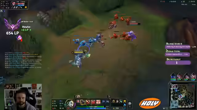 00:39:56Nach einem erfolgreichen Teamfight, in dem sein Ultimate einen gegnerischen Skill unterbricht, plant der Streamer seinen nächsten Zug. Er identifiziert Schadenslücken im Team und erwägt den Kauf von LDR, um besser gegen die gegnerische Fiora zu bestehen. Die Teamzusammenstellung wird als 'loser Team' eingestuft.