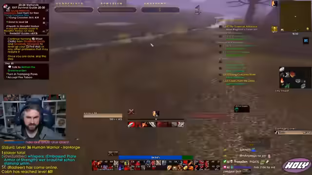 04:24:18Der Streamer berichtet von einem beeindruckenden Level-Fortschritt eines anderen Spielers, der einen Warrior auf Level 60 in nur drei Tagen und vier Stunden gebracht hat. Dies motiviert ihn, seinen Gnom Warrior ebenfalls schnell weiterzuleveln. Er plant, nach Erreichen von Level 30 eine Waffe (Warrant-X) zu farmen und danach Dungeons wie BFD und Uldaman zu besuchen. Langfristig denkt er an das Farmen von elementarer Erde und Waffen für Max-Level-Content.