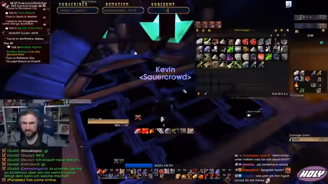 08:55:43Der Streamer beschreibt einen sehr erfolgreichen Dungeon-Lauf, bei dem sie die Gegner schnell eliminiert haben. Er bemerkt, dass es in allen Gildenbanken nur einen Bogen, aber keine Gewehre gab, und dass man als Ingenieur die Gegenstände craften kann. Nach dem Dungeon-Lauf geht es darum, Quests abzuschließen, insbesondere um einen Ring zu erhalten, wobei er darauf hinweist, dass die Quest nach dem Abgeben des Kopfes beginnt und man die Questnpcs in der Kathedrale und in der Burg aufsuchen muss.