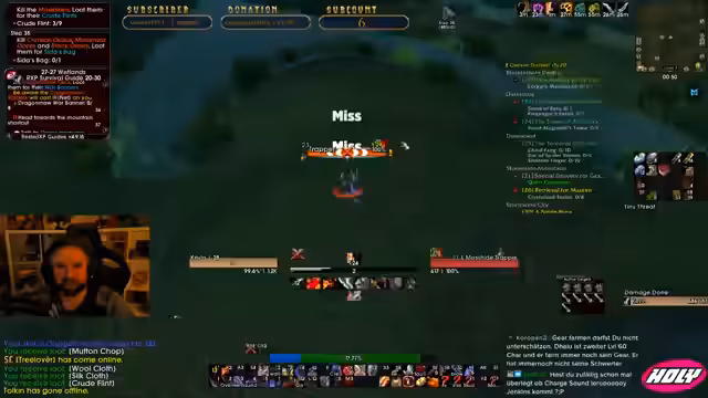06:13:18Der Streamer startet einen neuen Reroll als Gnom Tank Warrior, auf Grund des Tankmangels im Spiel. Die ersten Schritte auf dem Weg zum Level 23 verlaufen jedoch nicht reibungslos. Leider erleidet er schnell einen Todesfall und verliert dadurch sein HC im Relay. Der Streamer sucht vergeblich nach einem zuvor geschenkten Gegenstand und stellt fest, dass er nicht mehr bei ihm ist. Nachdem er seine Taschen wieder vollgemacht hat, bemerkt er trockene Haut und wird sich seiner Bedürfnisse bewusst. Er muss sich erstmal sammeln, bevor es mit dem Questen weitergeht.