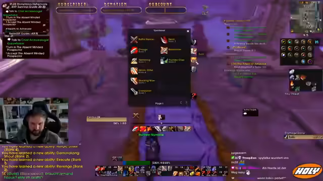 05:50:01Der Streamer zeigt sich frustriert über die hohe Anzahl von Todesfällen unter den High-Level-Spielern an diesem Tag, insbesondere unter den Warriors. Er vermisst seine World Buffs, die abgelaufen sind. Zudem hat er Probleme mit Spielmechaniken wie dem Overpower-Spell, das manchmal nicht funktioniert, obwohl der Cooldown abgelaufen ist. Er sucht nach Wegen, seine Rüstung weiter zu verbessern, und erwägt den Einsatz von 'Steady Talasite' für mehr Ausdauer.