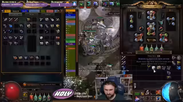 03:14:13Der Streamer konzentriert sich auf den Aufbau seines Charakters, indem er das Fehlen wichtiger Ausrüstungsgegenstände wie eine Purity of Elements und Skitterbots feststellt. Er beginnt, den Builds seiner Spectres und Guardian, wie den Summon Raging Spirit Guardian, zu analysieren und zu optimieren. Dabei experimentiert er mit dem Einbau verschiedener Items und Uniques, wie einem Arc Demon Crown, und stellt fest, dass bestimmte Mods, insbesondere Minions Level und Angriffsgeschwindigkeit, für seinen Build entscheidend sind, um seine Effektivität im Laufe des Spiels zu steigern und seine Überlebensfähigkeit zu erhöhen.