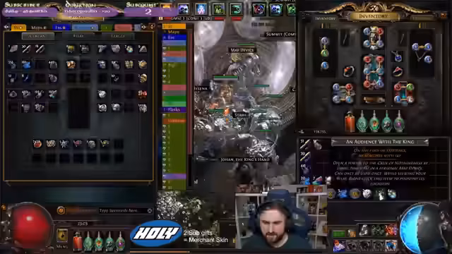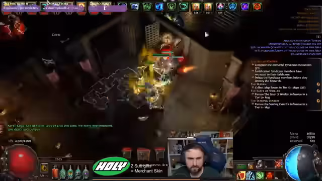 Es wurde ein intensives Gameplay in Path of Exile verfolgt. Im Fokus stand der kämpferische Durchlauf diverser Maps. Dabei wurden gezielt mächtige Bosse wie der Mist King und Katharina aufgesucht. Parallel dazu wurde der eigene Charakter durch gezieltes Verbessern von Ausrüstung und Skills kontinuierlich optimiert, um der wachsenden Gefahr gewachsen zu sein.