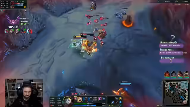 00:00:28Der Stream beginnt mit Begrüßungen und einer Diskussion über die neue 4K 60 FPS Kamera. Schnell wechselt das Thema zum neuen Champion Sahin, den der Streamer als 'Junge, wir haben ihn' bezeichnet. Es wird über die Runenwahl gesprochen, wobei Halo Blades als vielversprechende Option gegen Tanks wie Ornn getestet wird. Der Streamer äußert sich begeistert über das Spielgefühl von Halo Blades, da es ihm viel Schaden durch AD verleiht. Er betont, dass Electric nicht lohnenswert wäre und Halo Blades in den meisten Matchups die bessere Wahl sei, außer vielleicht gegen Jax. Der hohe Schaden auf dem Q des Champions wird als 'crazy' beschrieben, besonders durch die schnelle AD-Skalierung mit Halo Blades.