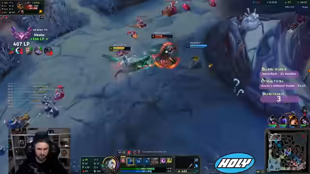 00:14:34Der Streamer erlebt eine intensive Phase, in der er viele Minions verliert und einen potenziellen Kill an Viego knapp verpasst. Er ist jedoch weiterhin von Halo Blades überzeugt, da es ihm ermöglicht, schnell Stacks zu sammeln und viel Schaden auszuteilen. Die Diskussion dreht sich um Item-Builds, wobei Triforce als wichtiges Item genannt wird. Später bemerkt der Streamer, dass er versehentlich ein falsches Item (Phage) gebaut hat, was ihn wundert, da er sich trotz seiner Stärke nicht so mächtig fühlt wie erwartet. Er reflektiert über seine Farm-Situation, die nicht optimal ist, und spekuliert über unbewusste Manipulationen, die zu seinen Fehlern geführt haben könnten. Trotzdem ist er von Sahin als 'geiler Champ' begeistert und befürchtet zukünftige Nerfs.
