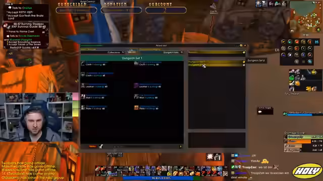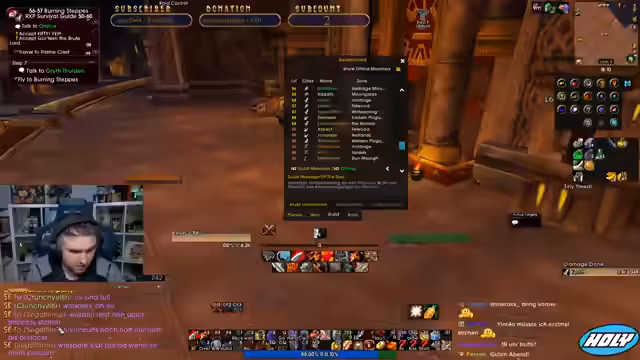 00:00:13Der Streamer beginnt den Abend mit der Planung seiner Aktivitäten. Es ist Zeit für einen Fallward-Dungeon, wobei ein gemeinsamer Dungeon mit World Buffs bevorzugt wird. Die Buffs sind für 19 Uhr angesetzt, was den Streamer motiviert. Nach der Buff-Abholung ist ein weiterer Dungeon geplant. Der Streamer gibt einen kurzen Überblick über die Anwesenheit seiner Gildenmitglieder, die bereits online sind, und bezieht den Chat in die Gespräche ein.