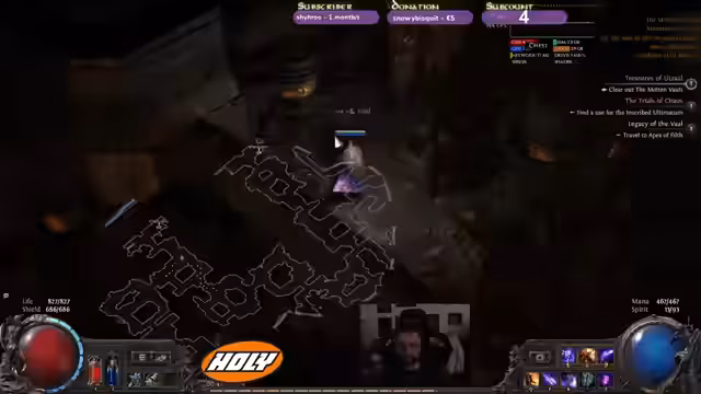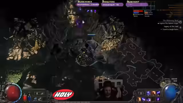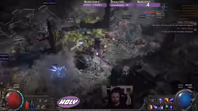 00:08:08Der Streamer taucht tiefer in die fortgeschrittenen Mechaniken des Spiels ein und spricht über die Bedeutung von 'Leech' zur Regeneration von Energy Shield. Er äußert seine Sorge vor bestimmten Bosskämpfen, insbesondere einem Feuertypen, der ihm mehr Angst macht als andere Gegner. Der Streamer navigiert durch komplexe Arenen wie das 'Lab' und trifft auf einen Bossgegner, den er mit erhöhtem Schaden bezwingen möchte. Dabei stellt er die Wirksamkeit seiner Auren und Fähigkeiten auf die Probe.
