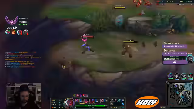 00:00:05Der Stream beginnt mit technischen Überlegungen zum Internet und einer frühen Interaktion mit dem Chat, wobei Namen wie Zündler, Spyfalke, Moinix und Poseidon genannt werden. Es wird über die Wahl des Champions für das aktuelle Spiel diskutiert, wobei Yone als bevorzugte Option hervorgehoben wird, da er momentan Spaß macht. Die Spieler im Chat tauschen sich über ihre Erfahrungen mit verschiedenen Champions aus und es wird die bevorstehende Veröffentlichung eines Druiden-Champions in einer neuen Season thematisiert. Die Spekulationen über den Druiden und seine Fähigkeiten sind ein zentrales Thema, wobei die Erwartungshaltung und die Vorfreude auf diesen neuen Charakter deutlich werden. Die Spieler diskutieren auch über Match-ups, wie Yone gegen Shen, und die damit verbundenen Herausforderungen im Early Game. Es wird auch über die Stärke von Jax im Jungle gesprochen und die Bedeutung von Team-Kompositionen für den Spielerfolg.