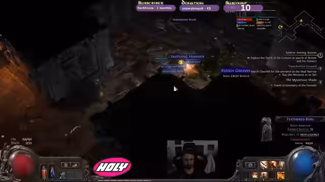 00:10:24Während des Streams wird die Leistung des Systems geprüft. Die Werte im Taskmanager und Arbeitspuls werden kontrolliert und als zufriedenstellend eingestuft. Die Konzentration richtet sich wieder auf die Spielfortschritte. Bei der Aufsammlung von Gegenständen entdeckt der Streamer einen sehr wertvollen Amethystring, was ihn positiv stimmt. Anschließend sieht er eine seltenere Monsterart und die unmittelbare Gegenreaktion darauf.