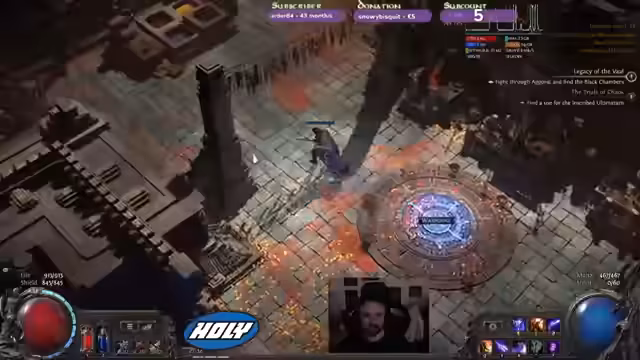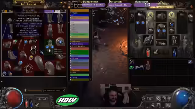 00:21:38Es wird überlegt, einen Chance Orbe für einen Helm zu verwenden, in der Hoffnung, einen wertvollen Gegenstand zu erhalten. Die Aufregung steigt, als tatsächlich ein Exalted gedroppt wird, was als großer Erfolg gefeiert wird. Es wird kurz überlegt, den Shop zu besuchen, aber schnell verworfen. Stattdessen wird der Fokus darauf gelegt, den Helm zu verbessern, da er als BiS (Best in Slot) angesehen wird. Es wird spekuliert, ob der Helm aus dem Gold-Helm stammt. Nach der Nutzung des Chance Orbe wird ein Molding Köpsen erhalten, was als positiv bewertet wird. Die Freude über den Erfolg ist deutlich spürbar, und es wird überlegt, wie der erhaltene Gegenstand optimal genutzt werden kann.