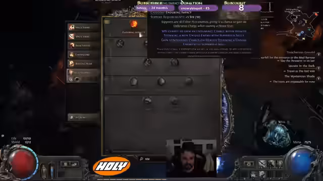 02:45:06Es wird über den kürzlichen Tod des Charakters auf dem Schiff in Akt 4 gesprochen, der durch Unachtsamkeit und Trödelei verursacht wurde. Der Streamer gibt zu, den Timer nicht beachtet und sich zu sehr auf den Loot konzentriert zu haben. Diese Erfahrung hat zu Frustration geführt, und der Streamer gesteht ein, tiltet zu sein und eine Pause zu benötigen. Trotz des Rückschlags freut er sich darauf, wieder Hammer bzw. Schild zu spielen und den neuen Charakter aufzubauen. Er reflektiert über frühere Tode im Spiel, die oft durch unerwartete Flächenschäden oder Stun-Lock-Situationen verursacht wurden. Um zukünftige Tode zu vermeiden, sucht er nach einer besseren Armor Base und überlegt, wie er Stun-Effekte besser kontern kann.