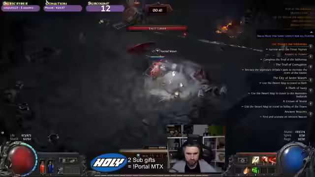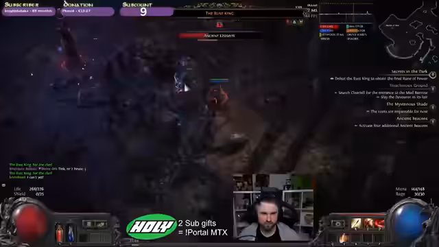 07:47:06Bei etwa 28:00 Uhr stirbt der Streamer überraschend im Kampf gegen den Endboss von Akt 2. Während er versucht, den Boss mit seinen Fähigkeiten zu besiegen, wird er in eine Animation gelockt und vom direkten Schlag des Bosses getroffen, was zum sofortigen Tod führt. Dieser unerwartete Verlust unterbricht den Spielfluss und zwingt ihn zum Neustart in diesem Bereich, wo er anschließend seine Ausrüstung und Strategie analysiert, um den Boss erneut anzugehen.