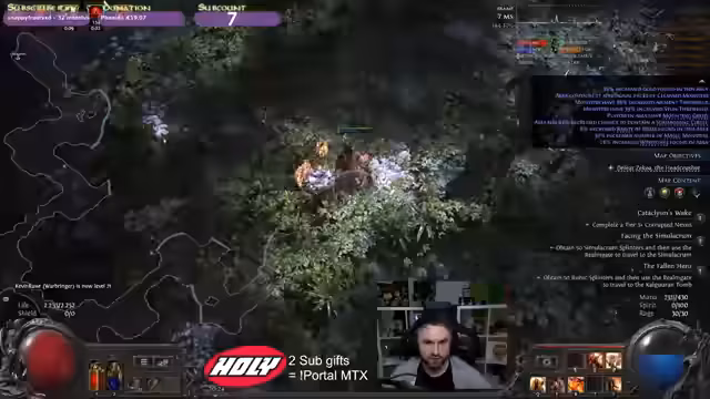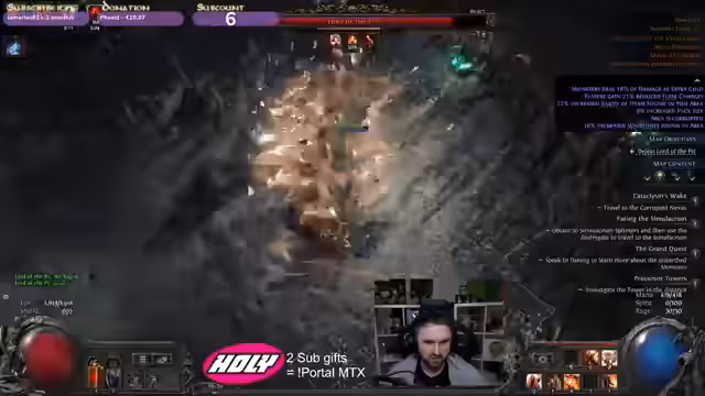01:11:34Der Streamer betritt eine riskante T2-Map mit gefährlichen Mods wie Ignited Ground und Extra Chaos Damage. Trotz guter Vorbereitung kommt es zu kritischen Situationen, insbesondere durch einen Poison Exile mit hoher Burst-Schaden. Nach einem fast tödlichen Treffer wird die Map vorzeitig beendet. Dies unterstreicht die Herausforderung von Endgame-Inhalten und die Notwendigkeit besserer Ausrüstung für zukünftige Runs.