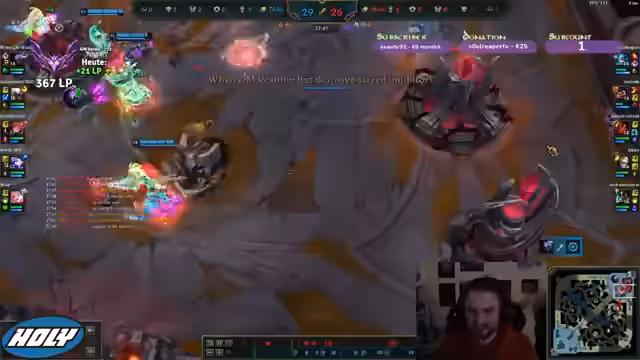 00:11:13Das Spiel startet, und der Fokus verschiebt sich auf die Laning-Phase. Der Streamer als Jungle plant, Druck auf der Top-Lane auszuüben, während er um den Buff- und Krabber-Camp kämpft. Die gegnerische Seite zeigt früh aggressives Verhalten, besonders mit einem möglichen Rammus-Gank-Bot. Es kommt zu gefährlichen Situationen um die ersten Objekte, wobei der Streamer den Krabber knapp verteidigt und anschließend versucht, den Drachen zu kontrollieren und Druck auf dem Map zu aufbauen.