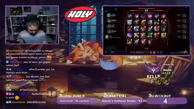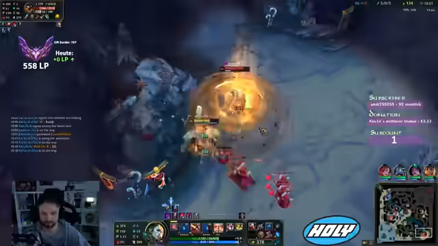 01:31:03In einem League-Spiel gerät das Team früh in Rückstand. Trotzdem kann Renekton durch solides Spiel und gute Positionierung das Spiel drehen. Das Team gewinnt einen entscheidenden Kampf, nachdem der Gegner-Asassin Malzahaer nicht gepunished wurde. Der Streamer lobt das Comeback und den Schaden seines Champions.
