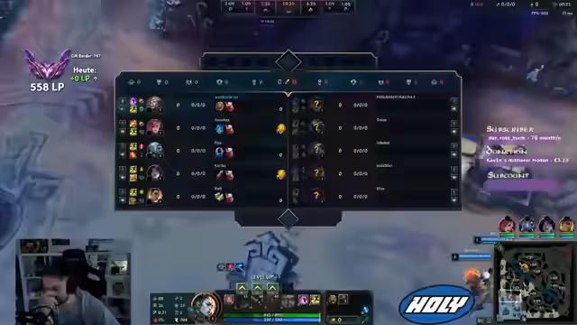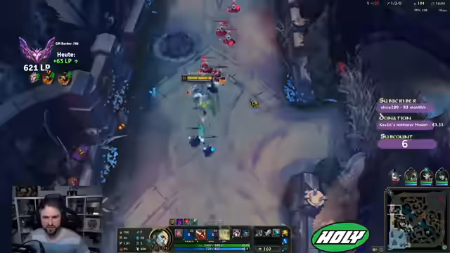 Es wurde ein League of Legends-Spiel gespielt, bei dem das Team früh in Rückstand geriet. Trotzdem konnte ein Champion durch solides Spiel und gute Positionierung das Spiel drehen. Nach einem entscheidenden Kampf, bei dem ein Fehler des Gegners nicht bestraft wurde, konnte der Sieg errungen werden.