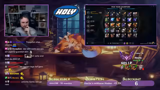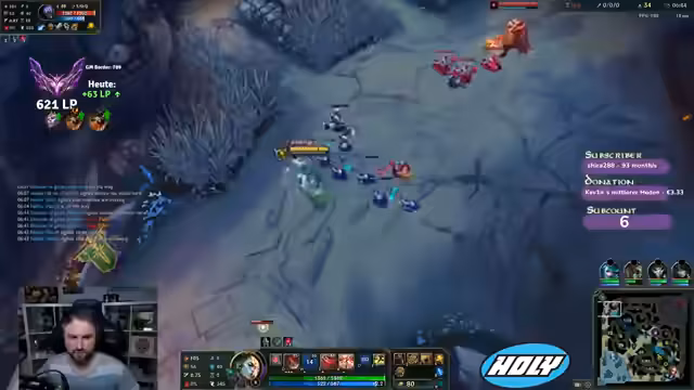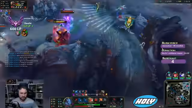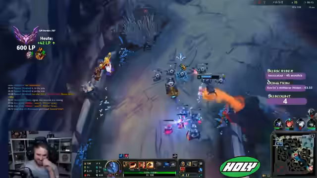 02:42:50Es wird auf eine aktuelle Rabattaktion für Holy-Produkte hingewiesen, bei der Zuschauer mit einem speziellen Code bis zu 40-50% Rabatt erhalten können. Parallel dazu läuft das League of Legends-Gameplay weiter, wobei der Spieler seine Item-Builds anpasst und überlegt, ob er auf Revenue's Hydra setzen soll, um den Sustain in der Lane zu verbessern. Die Schwierigkeiten in Teamfights und das Gefühl, trotz guter eigener Leistung vom Team nicht ausreichend unterstützt zu werden, werden thematisiert. Es wird über die fehlende Kommunikation und das schlechte Positioning von Teammitgliedern, insbesondere Zillian, gesprochen, was zu verlorenen Fights führt. Die Bedeutung von Objektiven wie Platings und die Skalierung des eigenen Champions im späteren Spielverlauf werden ebenfalls beleuchtet.