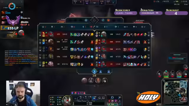 00:27:40Es wird über frustrierende Spielsituationen und inkompetentes Verhalten von Mitspielern berichtet. Der Typ beschwert sich. Du musst dir mal diese Logik geben von MrFishCake, HashtagRumble. KaneInvaded wird beim Invaden von Nafiri gecatcht, stirbt im Nashpit. Fünf Sekunden später stirbt der an der Nafiri, die zurückkommt und Silas, der auf der Lane steht und stirbt an diesem Gank quasi und pingt Silas. Lasst euch das mal im Kopf zergehen. Das ist ja brutale... Also... Junge. Die Sinnlosigkeit bestimmter Aktionen und die daraus resultierende Frustration werden hervorgehoben. Es wird deutlich, dass das Zusammenspiel im Team oft mangelhaft ist und zu unnötigen Niederlagen führt. Die Analyse des Spielverhaltens zeigt, dass mangelnde Koordination und individuelle Fehler das Spielerlebnis erheblich beeinträchtigen können, was zu Frustration und Unverständnis führt.