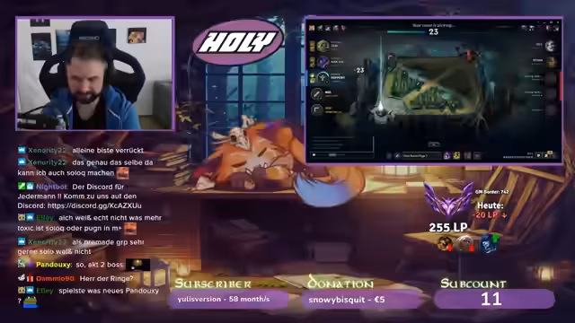 01:42:56Es wird über einen möglichen Rollentausch im Spiel diskutiert, wobei Support als Option in Betracht gezogen wird. Roll Swap Mitte? Ich weiß ja nicht. Hi. Lia, hast du gut geschlafen? Habe ich in zwei Monaten fünf Jahre? Hast du. Einfach fünfjähriges dann. Roll Swap Support? Junge. Warum Support jetzt? Jetzt erstmal TFT spielen, weil ich an die Decke gehe, weil ich in den ersten zwei Games heute hatte. Die Überlegung, neue Rollen auszuprobieren, deutet auf den Wunsch nach Abwechslung und neuen Herausforderungen hin. Es wird erwähnt, dass zunächst Teamfight Tactics (TFT) gespielt wird, um von den frustrierenden Erfahrungen in anderen Spielen abzulenken. Die Entscheidung, eine Pause von den üblichen Spielen einzulegen und sich neuen Herausforderungen zu stellen, zeigt die Bedeutung von Ausgleich und Abwechslung, um die Motivation und den Spaß am Spielen langfristig aufrechtzuerhalten.