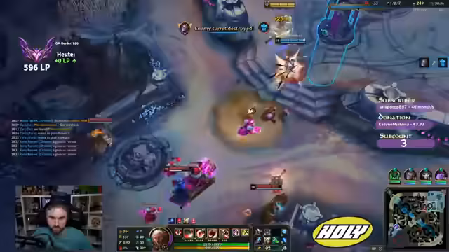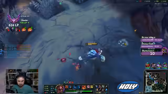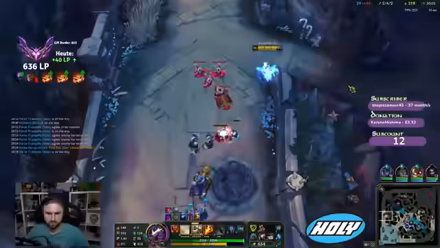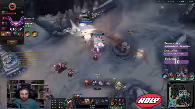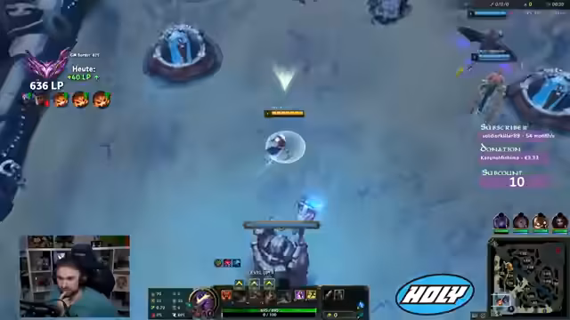 00:00:15Der Livestream beginnt mit dem Titel 'Oh die soloQ RUFT 700lp heute? Start: 596LP', wobei der Kanal 'kev1ntv' sein Ziel kommuniziert, von 596 LP auf 700 LP in der SoloQ zu klettern. Begrüßungen an Zuschauer:innen wie Spy Falke und Frieza werden ausgetauscht, während erste Matches vorbereitet werden. Die Stimmung ist motiviert, mit Fokus auf den anstehenden LP-Run und typischen SoloQ-Herausforderungen. Es wird über aktuelle Spielmechaniken und Meta-Diskussionen informiert, während die Community in den Chat einbezogen wird.