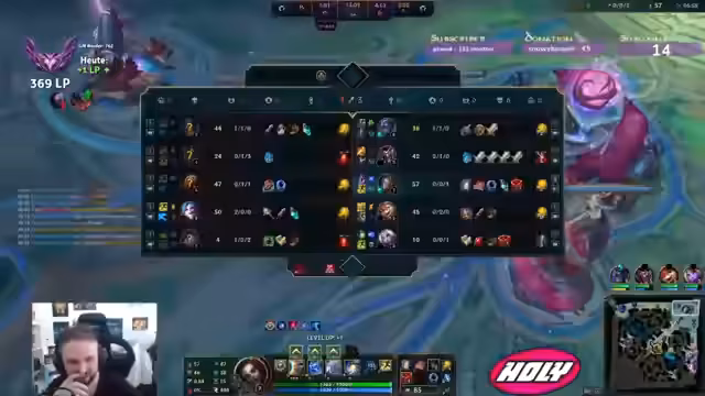 01:00:25Der Streamer spricht über unwichtige Dinge, wie Map-Skins in Dota und seine neue Dauerwelle, die er sich im Urlaub machen ließ, um das Haar fülliger aussehen zu lassen. Er kommentiert missglückte Spielzüge und ärgert sich über CC. Es wird über einen Hotfix für einen Bug diskutiert. Der Streamer analysiert Teamkämpfe und ärgert sich über eigene Fehler und die seiner Mitspieler. Er freut sich über einen Raid und kommentiert das Spielgeschehen, einschließlich Kills und Push-Versuche. Es wird über Item-Builds diskutiert, darunter Ludens und Storm-Search. Der Streamer plant, Plating zu holen und analysiert die Positionierung der Gegner. Er kommentiert den Manaverbrauch und überlegt, welche Items er als nächstes bauen soll. Es wird über die Tankyness von Vladimir diskutiert und eigene Flash-Aktionen kommentiert.