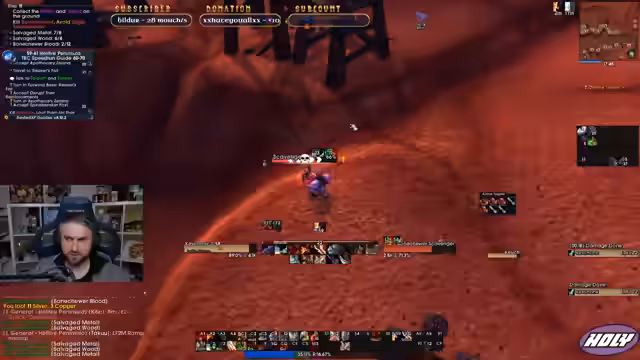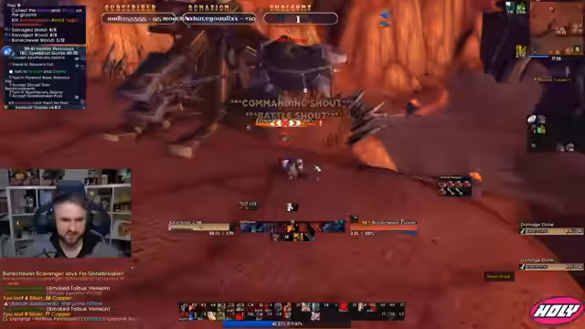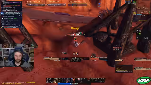 01:38:35Nach Abschluss der Vorquests beginnt der eigentliche Dungeon-Grind. Der Streamer trifft auf erste Bossgegner und agiert als Tank. Dabei kommt es zu kritischen Situationen, in denen er den Bossen entkommen muss oder die Fehlzeiten seiner Talente bemerkt. Der Streamer ist bestrebt, seine Schadenswerte zu verbessern und überlegt, welches Trinket für frühe Dungeons besser geeignet ist.