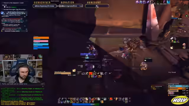 05:36:16Ein Heroic Dungeon Run wird vorbereitet. Als Prioritäten für den Loot werden ein Shoe Drop und ein Ring festgelegt. Der Streamer klärt, dass für Heroics kein Ruf mehr erforderlich ist, was den Zugang für Tanks wie den Warrior erleichtert, da dieser früh Crush Immune werden kann. Die Diskussion offenbart zudem die Option, Schlüssel für Heroics direkt zu kaufen.