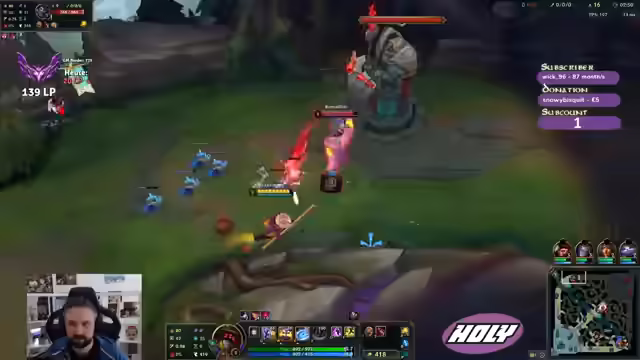 00:14:09Es wird über unerwartete Treffer und illegale Spielmechaniken diskutiert, insbesondere wie ein Q-Angriff trotz Ausweichbewegung getroffen hat. Es wird über den Kauf von Schuhen und deren Transformation gesprochen, wobei der Fokus auf den Boots liegt und wie diese funktionieren. Es wird der Mangel an Gold und der Bedarf an Items thematisiert, um gegen den gegnerischen Udyr bestehen zu können. Es wird die Entscheidung, Laterns Dominiks Grüße(LDR) zu bauen, in Betracht gezogen, um gegen Udyr bestehen zu können. Es wird die Möglichkeit diskutiert, Crypt-Fill zu bauen, aber es wird letztendlich verworfen. Es wird über das Feststecken an einer Kante im Spiel und die daraus resultierende Frustration gesprochen, was als äußerst ärgerlich empfunden wird. Es wird die Angst vor einem One-Shot durch Rengar geäußert und die Notwendigkeit, Items zu kaufen, um Squishies nicht zu one-shotten.