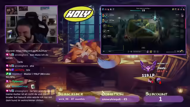 00:01:54Es wird über eine neue Zurückspulen-Funktion auf Twitch diskutiert, die es Turbo- und Channel-Subscribers ermöglicht, Livestreams anzuhalten, zurückzuspulen und aufzuholen. Es wird gerätselt, welche Streams als 'berechtigt' gelten und wie man diese Funktion nutzen kann. Im Bezug auf das Spiel League of Legends wird überlegt, welcher Champion gegen Udyr-Top gespielt werden soll, wobei der Fokus auf Range-Top-Lehner liegt. Es wird die Schwierigkeit des Matchups gegen Udyr betont und die Notwendigkeit, nicht in den Nahkampf zu gehen. Die Wahl fällt letztendlich auf Quinn, um dem gegnerischen Udyr entgegenzuwirken und den Spielstil anzupassen. Es wird überlegt, ob Gnar eine bessere Wahl gegen Udyr gewesen wäre, aber es bestehen Zweifel, ob dies im Spielverlauf tatsächlich besser gewesen wäre, da das Matchup als nicht ideal angesehen wird und die Entscheidung auf einem vertrauten Matchup basiert.