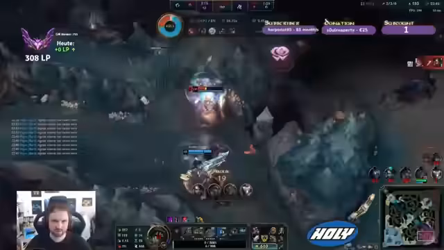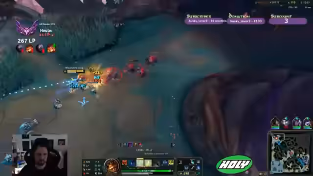 03:12:57Nach Erreichen von Level 6 unternimmt der Streamer erste Engagements in der Botlane. Zusammen mit seinem Jungler Skarner versucht er, einen Fisch zu stehlen und Druck aufzubauen. Die Gegner reagieren jedoch vorsichtig und der Kampf um den Drachen wird zum zentralen Punkt des Spiels. Der Streamer analysiert die Visionssituation und bemängelt die fehlenden Informationen.