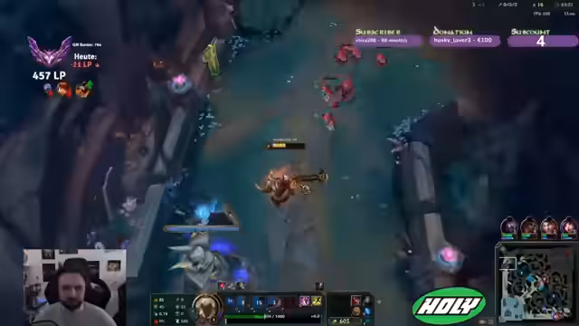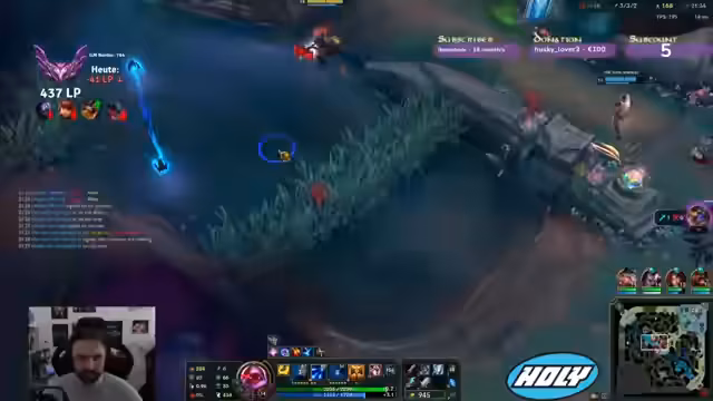 00:15:45Nachdem der Streamer einen Kill verpasst hat, hat er das Gefühl, Farm zu verlieren und die Kontrolle über die Lane zu verlieren. Er entscheidet sich, einen riskanten Trade zu wagen, was jedoch in einem Tod endet und ihm den Frust noch verstärkt. Das Chatverhalten, insbesondere von Autofill-Spielern, sorgt für zusätzlichen mentalen Stress für den Streamer.