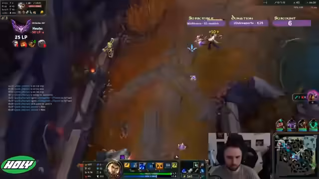 00:21:19Das erste Spiel endet mit einer klaren Niederlage. Der Streamer führt dies hauptsächlich auf die ineffektive Team-Komposition zurück, die den gegnerischen Kog'Maw stark werden lässt. Zudem analysiert er sein eigenes Matchup im Top-Lane, wo er mit Renekton gegen einen starken Gegner verliert und das Gefühl hat, keine geeigneten Gegen Picks zu kennen. Er äußert Frustration über seine wiederholten Niederlagen in bestimmten Matchups und beginnt, Champion-Ideen wie Tryndamere als Alternative zu erkunden.