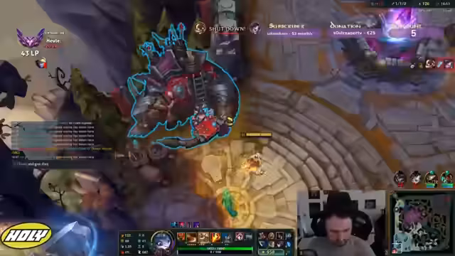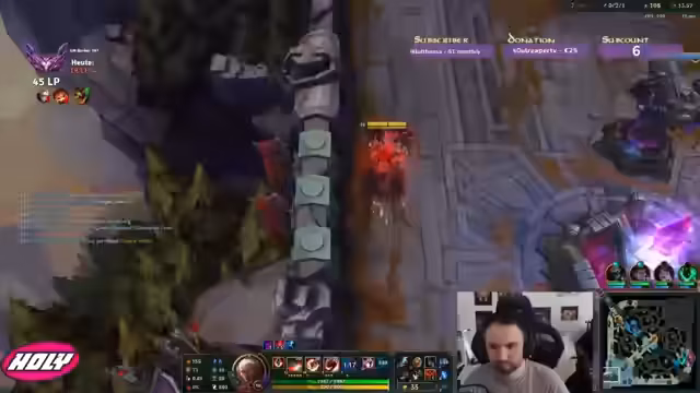 02:37:27Im zweiten Spiel, das als Jungle Draven beginnt, wird das technische Problem der Ruckler fortgesetzt, was den Streamer zusätzlich verärgert. Er spielt Jungle und versucht, in der Lane zu bestehen, fühlt sich aber nutzlos, da er nicht genug Schaden gegen den getankten Kayle und den Draven machen kann. Die Gegner dominierten das Spiel früh, und der Streamer konstatierte, dass seine Item-Bauweise (Kaiserbild) in dieser Situation nutzlos war.
