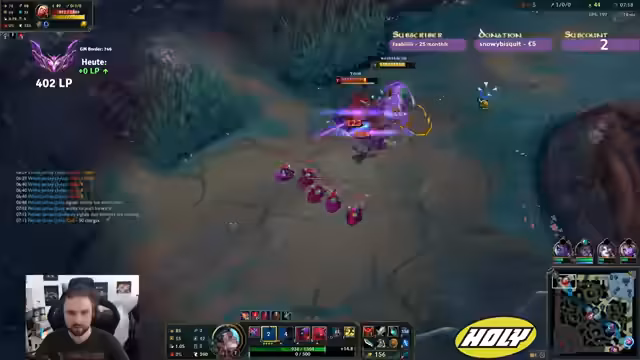 00:06:35Der Fokus liegt auf dem Erreichen von mehr LP in der Rangliste, nachdem der Streamer zuvor 60 LP in drei Spielen verloren hat. Ein größeres Problem ist jedoch die persönliche Champion-Auswahl. Er erkennt an, dass er starke Champions zum Climben spielt, aber diese hat er selbst im Gegenspiel gehasst. Der Mangel an einem Champion, auf den er derzeit richtigen Bock hat, wird wiederholt als Hauptgründe für seine schlechte Leistung und Frustration genannt. Er spielt einen Champion, den er als 'nerviges Design' bezeichnet.