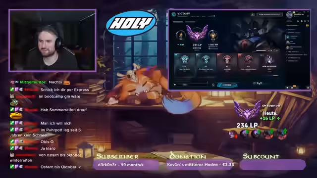 00:39:14Ein Spiel endet erfolgreich mit einer Statistik von 18 Kills, 5 Toden und 10 Assists, was der Streamer als "Huge Game" und "fetter Toplane Carry" bezeichnet. Er hat zwar nur 144 CS (Creep Score), aber die hohe Anzahl an Kills gleicht dies aus. Er gewinnt erneut 21 LP und hat den meisten Schaden im Spiel verursacht. Anschließend diskutiert er über technische Einstellungen, insbesondere wie man die Anzeige von Raids im Chat deaktiviert. Die Community hilft ihm dabei, die entsprechenden Einstellungen in Twitch zu finden. Er überlegt auch, welche Art von Video-Content er in Zukunft produzieren möchte, da er das Gefühl hat, dass Pack-Openings nicht mehr so viele Zuschauer anziehen. Stattdessen zieht er in Betracht, gecuttete Solo-Q-Videos mit mehr Kommentaren oder Learn-Videos und Build-Vorstellungen zu erstellen. Auch Reaction-Videos zu "Salzsturm der Gefühle" mit Hintergrundgeschichten sind eine Option.