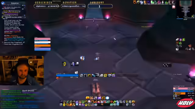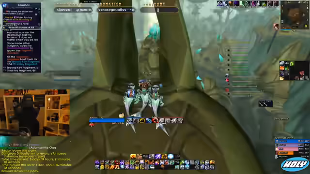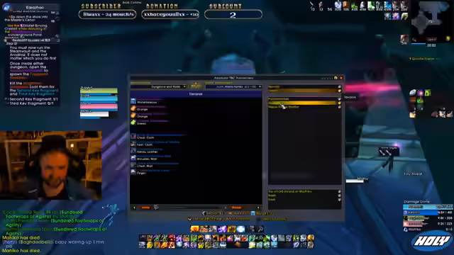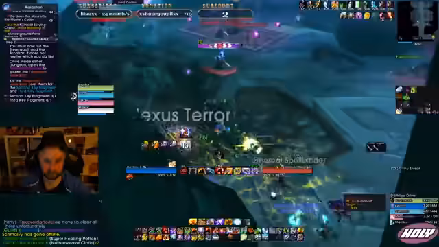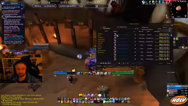 01:14:49Während eines Dungeons im Slave Pens kommt es zu Kommunikationsproblemen. Der Streamer beschreibt, wie er den Tank mit dem Prayer of Mazing hält, während sein Heilerkollege die Tanks toppen sollte. Es wird eine unklare Situation beschrieben, in der der Tank Aggro verliert und der Streamer die Gruppierung anspricht. Auch die Mana-Burn-Mobs im Dungeon werden als gefährlich eingestuft und es wird eine Strategie für deren Umgang besprochen.