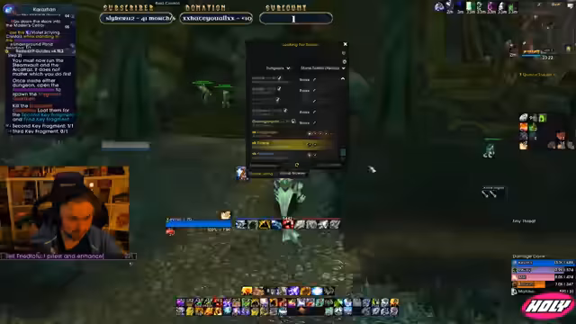 02:12:04Es wird versucht, eine Gruppe für den Dungeon Slave Pens zu finden, wobei ein Caster-Trinket als besonders attraktiv angesehen wird. Gleichzeitig wird die aktuelle Aktivität auf dem Server analysiert, indem geprüft wird, wie viele Spieler in Karazhan oder anderen Dungeons unterwegs sind. Es wird festgestellt, dass die Aktivität generell geringer ist, vermutlich, da viele Spieler in vorbereiteten Raids oder schlafen.