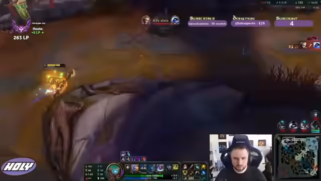00:04:59Es wird über leichte Handgelenksschmerzen geklagt, vermutlich durch falsche Schlafposition. Trotzdem wird das Spiel gestartet. Es gab noch nicht viele Spiele, aber das Handgelenk schmerzt ein wenig. Es wird beobachtet, wie es sich beim Spielen entwickelt. Es wird überlegt, ob das First Blood etwas wert war, da der XP Disadvantage toxisch ist und XP auf der Toplane Macht bedeutet. Trotz des frühen Kills ist das Level weiterhin deutlich niedriger als beim Gegner. Es wird über den Jungle philosophiert und das Unverständnis über die Spielweise des Junglers ausgedrückt, insbesondere wie dieser trotz eines Level-Opfers zu Beginn so stark zurückliegen kann. Es wird die Entscheidung, Level 1 auf der Top Lane zu opfern, um den Kane zu töten, im Nachhinein als nicht wertvoll erachtet, da der Jarvan danach nicht gut gespielt hat. Es wird die Frage aufgeworfen, ob der Jungle viel ausmacht.