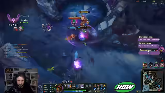 00:07:00Während des Spiels gibt es kritische Momente und Selbstreflexion. Der Streamer erkennt Fehler an, wie das Fehlen von Farm und ungenutzte Chancen zum 'poken' des Gegners. Es folgt eine Analyse der gegnerischen Taktik, insbesondere die Gefahr eines 'Ganks', und er stellt fest, dass seine Teamkameraden in Teamkämpfen versagen, indem sie sich alle drei stunnen lassen und dadurch die Situation verschlechtern.