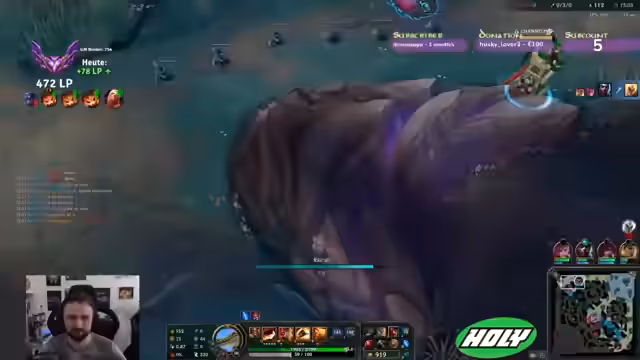 00:10:20Während des League of Legends-Gameplay auf der Top-Lane mit dem Champion Gnar beobachtet der Streamer bedrohliche Temperaturwerte seiner CPU. Er registriert Spitzen von über 100 Grad Celsius, insbesondere während des Ladevorgangs zwischen den Maps. Dies führt ihn zu der Vermutung, dass seine CPU möglicherweise defekt ist oder das Spiel Path of Exile (PoE) Probleme verursacht. Er beschreibt das Gefühl, dass die Performance-Cores manchmal am Rande ihrer Belastungsgrenzen laufen, bleibt aber zunächst unklar, ob dies von Dauer ist.