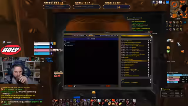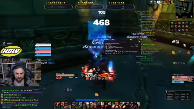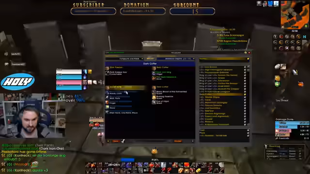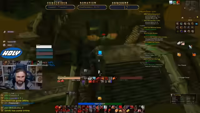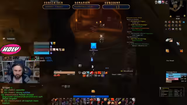 00:05:10Die Konzentration verlagert sich auf die Planung eines Dungeons. Der Streamer und seine Zuseher bereiten einen Lauf durch den Tempel von Atal'Hakkar vor. Dabei werden die notwendigen Quests, insbesondere für den Boss Hakkars Avatar, besprochen und geklärt, dass nur einer das Ei benötigt, um den Boss zu beschwören. Der Streamer stellt sicher, dass alle Pquests erledigt sind und erwähnt den Plan, nach dem Dungeon noch weitere Mobs für eine Quest zu farmen. Die Gruppe für den Dungeon steht kurz vor dem Zusammenschluss.