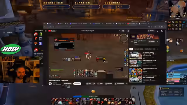 05:59:01Der Streamer widmet sich der Diskussion seiner Talent-Spezialisierung als Fury-Tank. Er erwägt, sich Dual-Spec zu gönnen, um sowohl als Tank als auch für Fury-DPS gerüstet zu sein. Die Vorteile und Nachteile des Tankings mit einem Schild im Vergleich zu einem Schildlosen Tank werden besprochen. Der Streamer entscheidet sich nach Rücksprache mit dem Chat und Guides für einen full Tank-Skill-Baum. Er möchte die Tank-Variante im Classic-Spielen ausprobieren, da er bisher nur als DPS gespielt hat.
